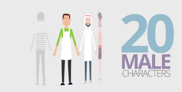 جعبه ابزار ساخت موشن گرافیک شهر کارتون شامل  ۳۵۰+ آیتم متحرک  ۲۰ کارکتر اماده مرد